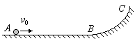 15、(本题12分)如图所示,光滑的弧形轨道BC与粗糙的水平轨道AB相切,AB长为10m,BC足够高,一物体以v0 = 10m/s的速度从A点出发,最后恰好又停在A点,求: