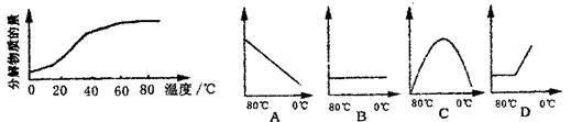 21.下左图表示某种有机物加入酶后,置于O℃至80℃环境中,有机物的分解总量与温度的关系图。根据该图判断,如果把这些物质置于80℃至O℃的环境中处理,符合其关系的是下右图A、B、C、D中的 ( )