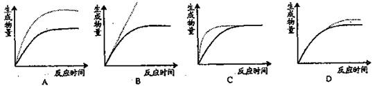 22.下图纵轴为生成物量,横轴为反应时间,其中能正确表示酶浓度增加(而其他条件不变)时,生成物量发生相应变化的曲线图是(图中虚线表示酶浓度增加后的变化曲线)