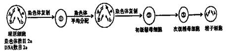 26.下图是染色体数目为2n,DNA数目为2a的精原细胞增殖以及形成精子过程的示意图。图中标明了染色体与染色体上的基因。设①③细胞都处于染色体的着丝点向两极移动的时期。据图分析,下列叙述不正确的是 ( )