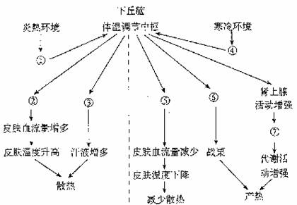33.(14分) 试填空完成下图所示的炎热环境、寒冷
