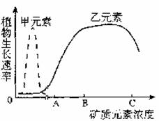 (7分)右图表示土壤中甲、乙两种矿质元素浓度变化与植物生