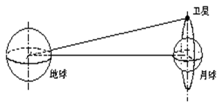 (2)当绕月极地轨道的平面与月球绕地公转的轨道平面垂直,也与地心到月心的连线垂直(如图所示)。此时探月卫星向地球发送所拍摄的照片,此照片由探月卫星传送到地球最少需要多长时间?已知光速为c。