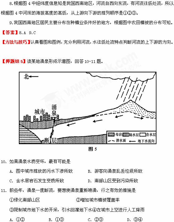 10.从图中可判定给地下水为深层地下水,补给区应是远处的山区,若水质变差,应是由于补给区出了问题,与隔水层之上的城市无关。