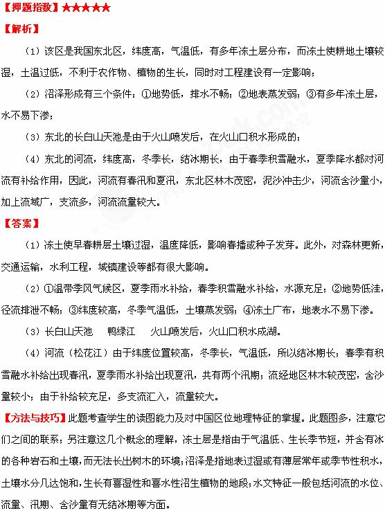 (2)东北地区是我国沼泽分布最广的地区,试从自然角度分析其形成原因(12分)