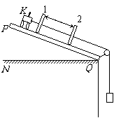 (10分)像打点计时器一样,光电计时器也是一种研究物体运动情况的常见计时仪器,每个光电门都是由激光发射和接收装置组成。当有物体从光电门通过时,光电计时器就可以显示物体的挡光时间。现利用如图所示装置设计一个“探究物体运动的加速度与合外力、质量关系”的实验,图中NQ是水平桌面、PQ是一端带有滑轮的长木板,1、2是固定在木板上间距为
