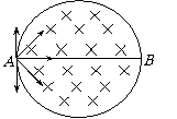 14.(16分)如图所示,一匀强磁场磁感应强度为B;方向向里,其边界是半径为R的圆,AB为圆的一直径.在A点有一粒子源向圆平面内的各个方向发射质量m、电量-q的粒子,粒子重力不计.