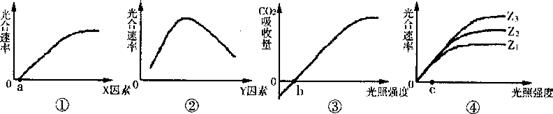 C.④图中,Z因素(Z3>Z2>Z1)可以表示CO2浓度。当光照强度小于c值时,限制光合速率增加的主要因素是光照强度。