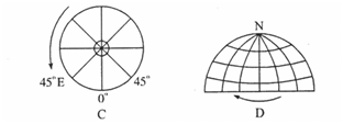 19.面四幅图中,能正确表示地球自转方向的是![]()