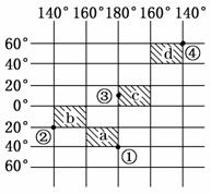 22.图中a、b、c、d四个区域,实际面积最小的是 ( )