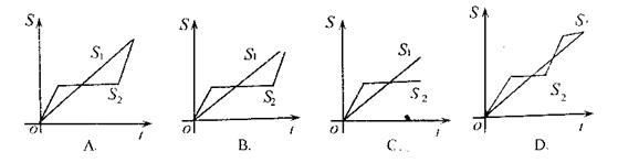 6.“龟兔赛跑”讲述了这样的故事:领先的兔子看着慢慢爬行的乌龟,骄傲起来,睡了一觉,当它醒来时,发现乌龟快到达终点了,于是急忙追赶,但为时已晚,乌龟还是先到达了终点……,用S1、S2分别表示乌龟和兔子所行的路程,t为时间,则下图与故事情节相吻合的是 ( )