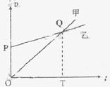 图像如图所示,图中ΔOPQ和ΔOQT的面积分别为s1和s2(s2>s1),初始时,甲车在乙车前方s0处,则( )