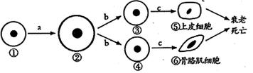 26.下图为人体某早期胚细胞所经历的生长发育阶段示意图,图中①-⑥为各个时期的细胞,a-c表示细胞所进行的生理过程。据图分析,下列叙述正确的是 ( )