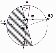 右图为某日太阳和月球分处地球两侧时光照简图,读图完成8-9题。