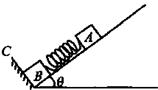 17.(14分)如图所示,在倾角为θ的光滑斜面上有两个用轻质弹簧相连接的物体A、B,它们的质量分别为mA、mB,弹簧的劲度系数为k,C为一固定挡板,系统处于静止状态。现开始用一恒力F沿斜面方向拉物块A使之向上运动,当物块B刚要离开C时,求