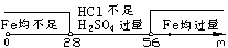 ② 当m≥56g, 两种酸均能完全反应,放出H2量H2SO4是HCl的2倍.