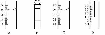 ⑴ D的仪器名称是________________,A图中液面所示液体的体积为_________mL,