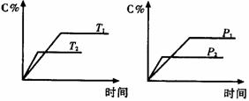 cC(g);△H=-Q,生成物C的质量分数与压强P和温度的关系如下图,方程式中的系数和Q值符合图象的是( A
