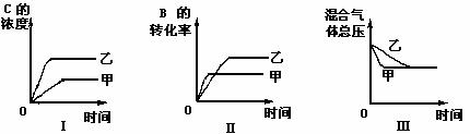 D、图Ⅲ研究的是不同催化剂对反应的影响,且甲使用的催化剂效率较高