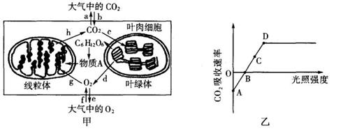 (2)图乙中, D点之后图甲中CO2的四条扩散途径(a、b、c、h)中,一般不会发生的途径是___________。