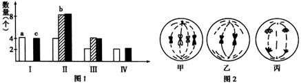 (2)图1中Ⅲ的数量关系对应于图2中的_______,图2中丙所示的细胞有____个染色体组。