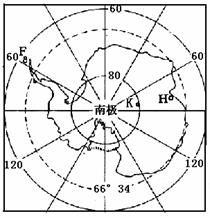 右图中H、K、F为我国科学考察站,H站(80°25´S, 77°07´E, 4087m) K站(69°22´S ,76°23´E),读图回答9-10小题