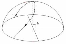 下图表示20°N某地某日太阳视运动轨迹,图中h=90°,读图回答11-12题。