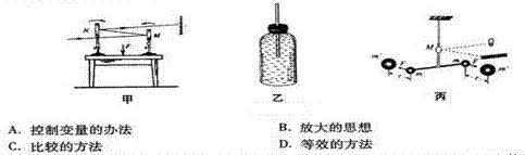 8. 图甲是演示桌面在压力作用下发生形变的装置;图乙是演示玻璃瓶在压力作用下发生形变的装置;图丙是卡文迪许测定引力常数的装置。这三个实验共同体现了