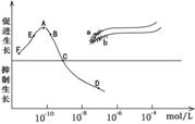 C.a侧的生长素浓度为最适宜浓度,细胞伸长生长快,b侧的生长素浓度低于a侧,相当于曲线FE段的浓度,因而细胞伸长生长慢