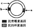 质粒是基因工程中最常用的载体,它存在于许多细菌体内。某细菌质粒上的标记基因如右图所示,通过标记基因可以推知外源基因(目的基因)是否转移成功。外源基因插入的位置不同,细菌在培养基上生长情况也不同,右图示外源基因在质粒中可插入的位置有a、b、c点。某同学根据实验现象对其插入的位点进行分析,其中分析正确的是