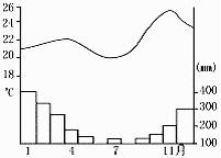右图为某地气温和降水的月变化图,读图判断6-8题。