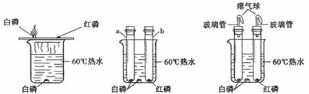 a试管中白磷燃烧,热水中白磷没有燃烧. b试管中红磷没有燃烧. |