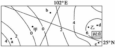 (3)图中甲地一月平均气温大约为 ℃,乙处地形可为 。