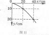 (2)某同学做该试验时得到了如图11所示图象,点和数据已标出,则平抛小球的初速度为
