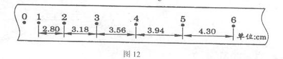 15.某同学在做“验证机械能守恒定律”的试验时,不慎经一条选好的纸带的前面部分损坏了,剩下的一端纸带上各点间的距离,他测出并标在纸带上,如图12所示。已知打点计时器的周期为0.02s,重力加速度为![]()