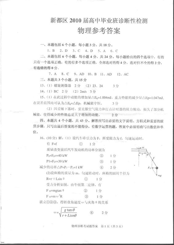 16.(10分)(1)为了响应国家的“节能减排”号召,某同学采用了一个家用汽车的节能方法。在符合安全行驶要求的情况下,通过减少汽车后备箱中放置的不常用物品和控制加油量等措施,使汽车负载减少。假设汽车以72km/h的速度匀速行驶时,负载改变前、后汽车受到的阻力分别位2000N和1950N。请计算该方法使汽车发动机输出功率减少了多少?