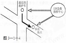 9.组委会接到赛道某地点一个急救电话,需要通过120急救指挥中心在最短的时间内指挥救护车到达事故地点。如图3-1-4所示,120急救指挥中心要确定哪一辆救护车离事故地点最近,可以利用的技术是: