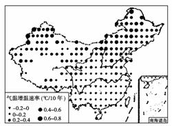 下图为“1951-2002年我国气温增温速率的分布图”,读图回答13-14题。