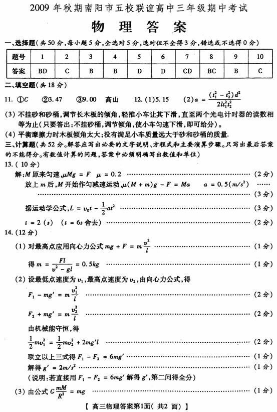 14.(12分)宇航员在地球上用一根长0.5m细绳拴着一个小球在竖直平面内做圆周运动,用传感器测出小球在最高点时的速度大小v=3m/s及绳上的拉力F=4N.若宇航员将此小球和此细绳带到某星球上,在该星球表面上让小球也在竖直平面内做圆周运动,用传感器测出小球过最低点和最高点时,绳子的拉力大小相差是6N,取地球表面重力加速度=10m/s2,空气阻力不计.求: