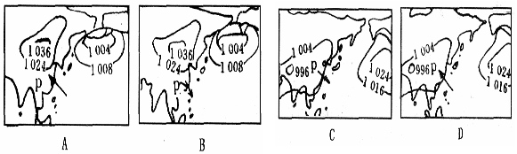 23.如图所示,能正确表示7月份亚欧大陆与太平洋气压分布及P地风向的是( )