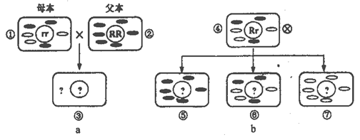 (2)假设图b中④个体自交,后代出现绿色叶片植株⑤:花斑叶片植株⑥:白色叶片植株⑦的比例是 ,这是因为细胞质遗传物质的分离具有 的特点;后代出现红花、花斑叶片植株:白花、花斑叶片植株的比例是 。