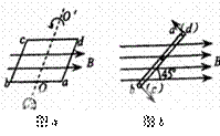 19.如图a所示,一矩形线圈abcd放置在匀强磁场 中,并绕过ab、cd中点的轴oo′以角速度