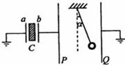 21.如图所示,c为中间插有电介质的电容器,a和b为其两极板;a板接地;p和q为两竖直放置的平行金属板,在两板间用绝缘线悬挂一带电小球;p板与b板用导线相连,q板接地。开始时悬线静止在竖直方向,在b板带电后,悬线偏转了角度a。在以下方法中,能使悬线的偏角a变大的是
