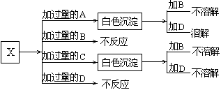 1.(09年岳阳模拟)A、B、C和D分别是NaNO3、NaOH、HNO3和Ba(NO3)2四种溶液中的一种.现利用另一种溶液X,用如下图所示的方法,即可将它们一一确定.试确定A、B、C、D、X各代表何种溶液.
