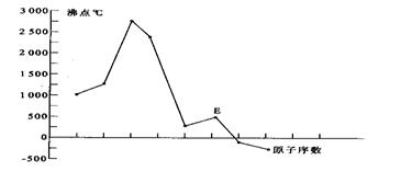 13.(山东省济南市2009年4月份高三模拟)原子序数依次增大A、B、C、D、E、F(A、B、C、D、E、F分别代表元素符号)六种短周期元素。元素A的原子半径在短周期中最小,元素C的单质在空气中含量最多,D+比F-少一个电子层,E所在周期的各元素单质沸点变化如下图(元素按原子序数递增顺序连续排列),B、C两种元素分别能与A形成等电子的甲、乙两种分子,且两种分子中各原子的个数见下表: