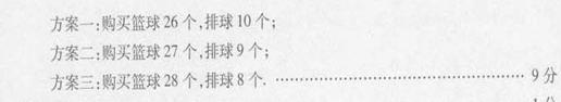 (2)若要求购买的篮球和排球的总数量是36个,且购买的篮球数量多于25个,有哪几种购买方案?