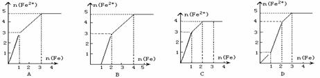 24. 某稀溶液中含有等物质的量的ZnSO4、Fe2(SO4)3、H2SO4、CuSO4,向其中逐渐加入铁粉,溶液中Fe2+的物质的量(纵坐标/mol)和加入铁粉的物质的量(横坐标/mol)之间的关系为( )