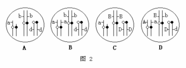 ⑶如果该生物进行测交,另一亲本体细胞中的染色体和有关基因的组成应是图2中的 。