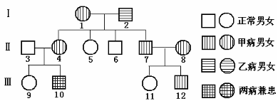 (4)按我国婚姻法规定,Ⅲ9与Ⅲ12禁止结婚,若Ⅲ9与Ⅲ12违法结婚,子女中患病的可能性是 。
