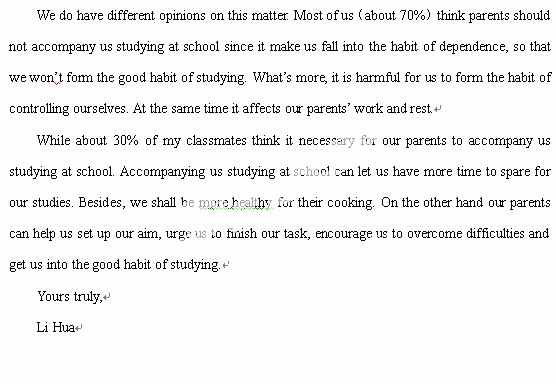 I’m writing to tell you about the discussion we recently had about whether our parents should accompany us studying at school. …
